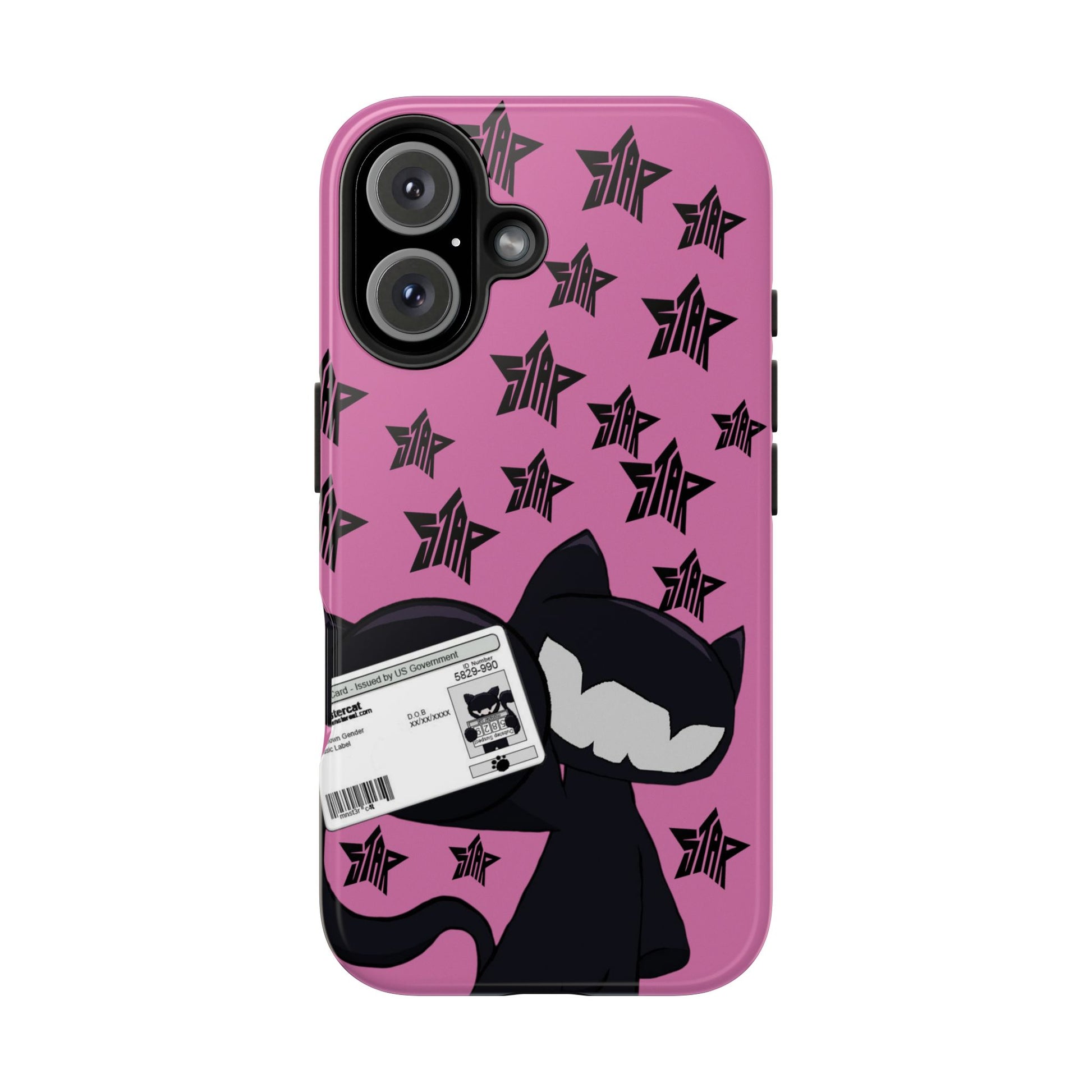 Slip this tough, characterful phone case onto your device and feel a little mischief in your pocket. The glossy, UV-protected art pops against a berry-pink backdrop while a shadowy, grinning cat clutches a tiny ticket — playful, bold, and a touch rebellious. The two-piece shell and shock-absorbing rubber liner work quietly behind the scene, keeping scratches and drops from interrupting your day. Bring it along to crowded commutes, late-night gigs, and everyday adventures where style and protection matter equally.