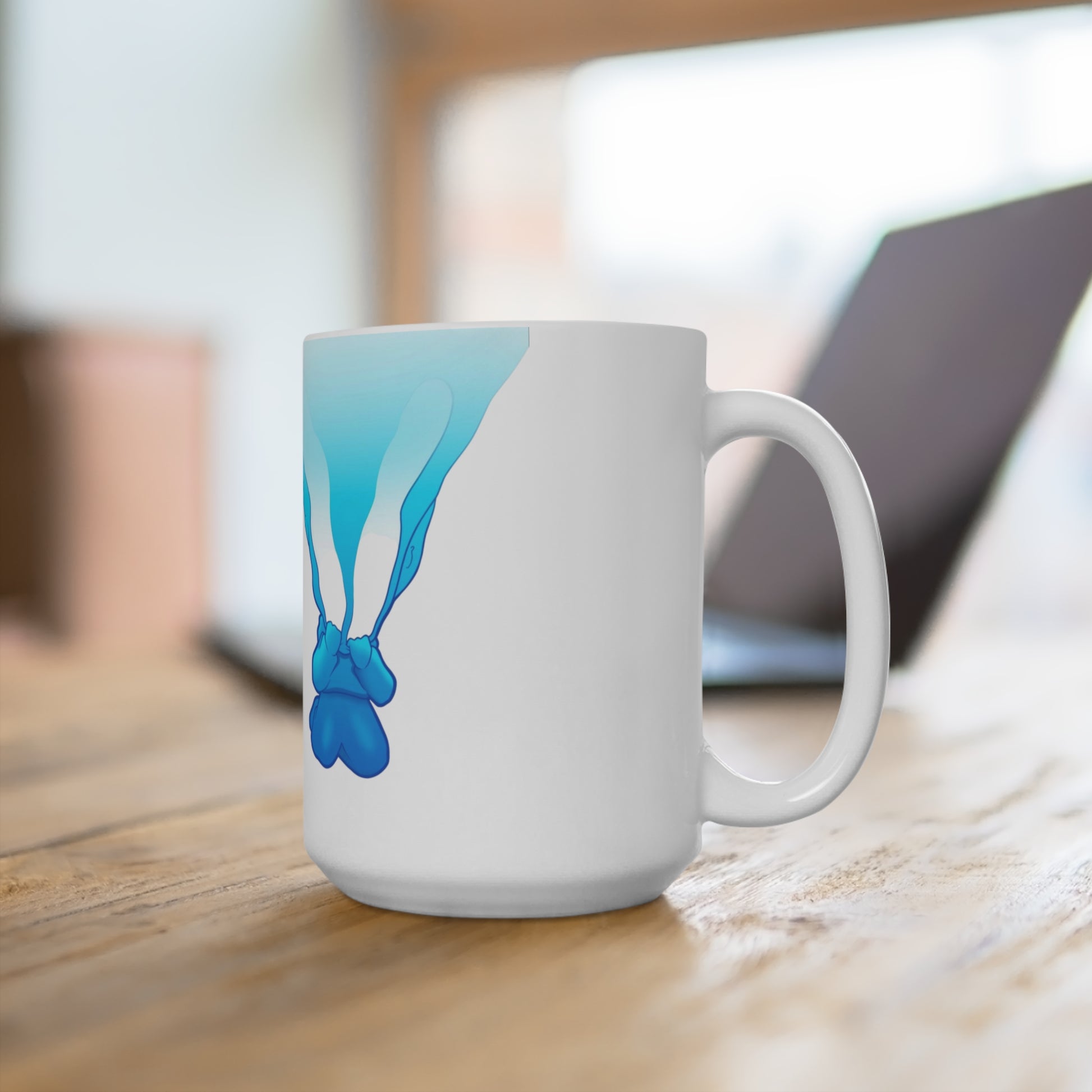 A calm morning by the water distilled into a drinking vessel. This 15oz ceramic mug carries a soft wash of aqua and cobalt shapes that drift like ink or sea glass across a white surface. It feels quietly contemporary — the smooth rounded corners and comfortable C-handle make each sip easy, while the generous 15oz capacity holds an extra pour of coffee, tea, or hot chocolate for slow starts and long conversations. Dishwasher- and microwave-safe, lead- and BPA-free, it moves from morning routine to late-night reflection without fuss. Keep it on your desk, beside a sketchbook, or in your favorite reading nook to bring a small, steady reminder of calm tides and clear light.